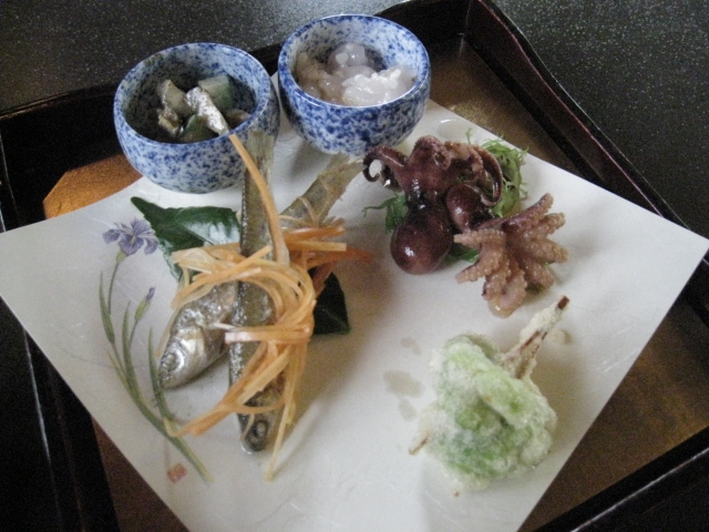 甘海老の麹漬けや飯蛸、諸子にんぴ漬け、サザエ肝和え