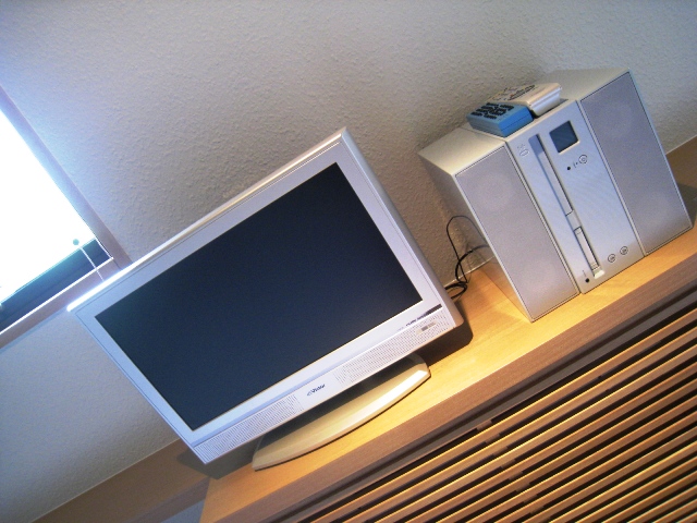 液晶TVは小さめ?DVDも借りられます。