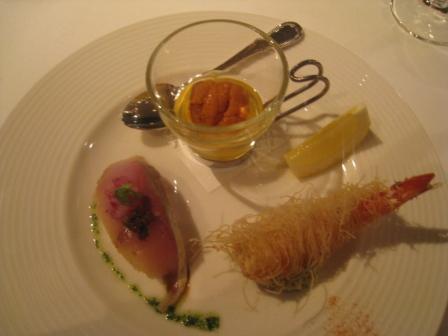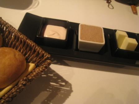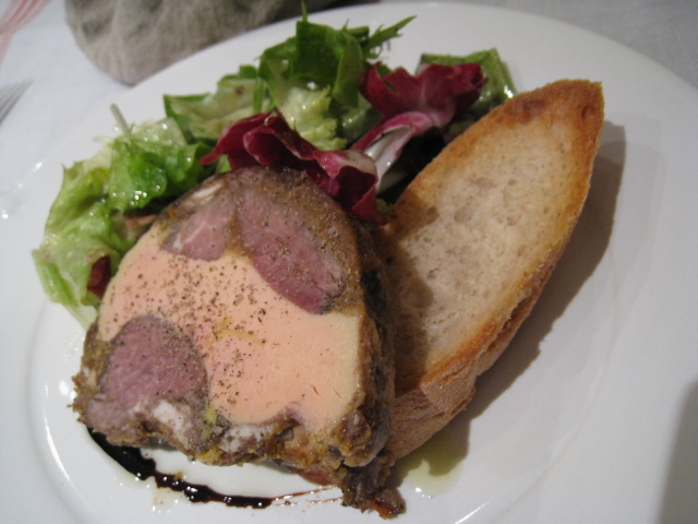 前菜は<仔羊とフォアグラのテリーヌ>、パンのトースト添え』