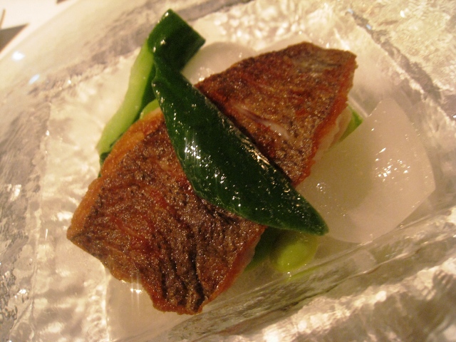 鯛の皮がパリパリで白身のお魚は優しいお味、美味しかった