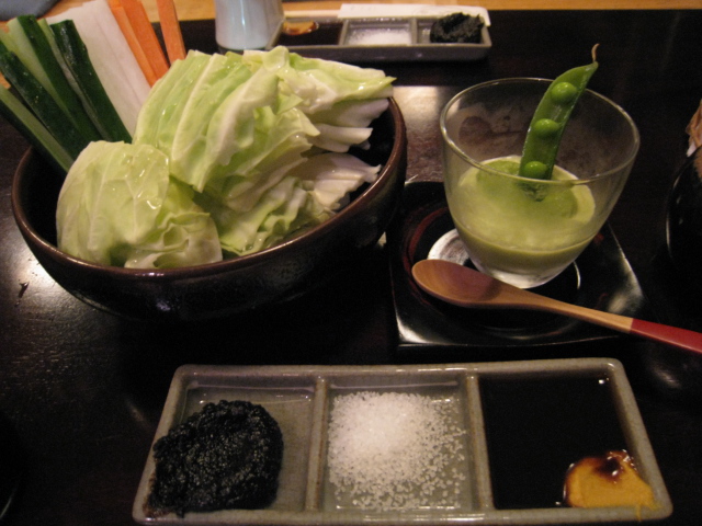 先日は前菜2品とチーズとワインを楽しみました。