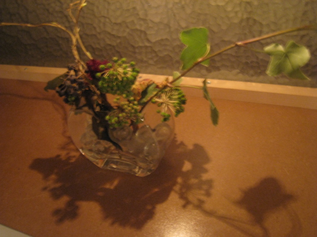 お風呂の入り口にあるお花のアレンジ、お正月らしくて足を止めて眺める