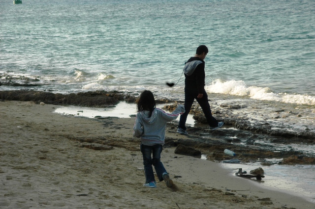 ビーチの出る私達。今度は真夏に来たいね、来ようね。