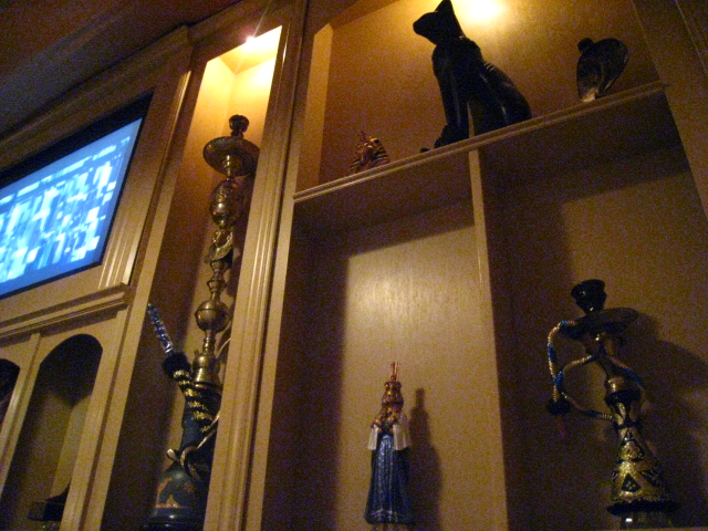 エジプトの置物や水たばこがセンス良く飾ってあります