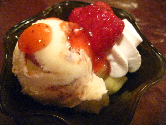 アイスクリームと洋ナシとパインそして生クリームと苺