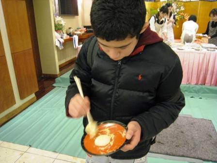 夕刻ホテルに戻ると祝酒と搗き立てのおもちが振舞われていた。