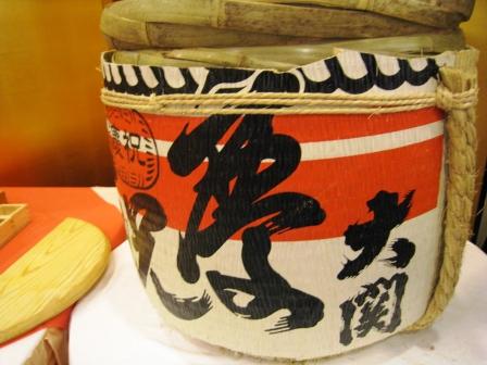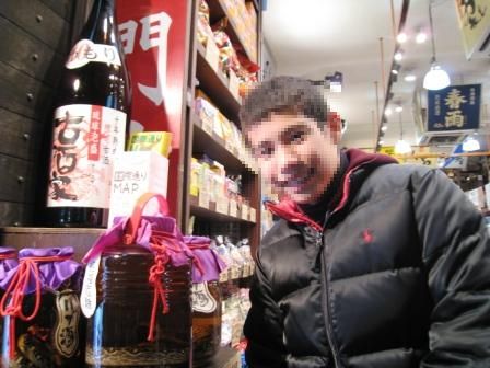 温かい甘酒を飲む・・・棚に飾られた数々の銘酒を眺めていたらついつい・・・