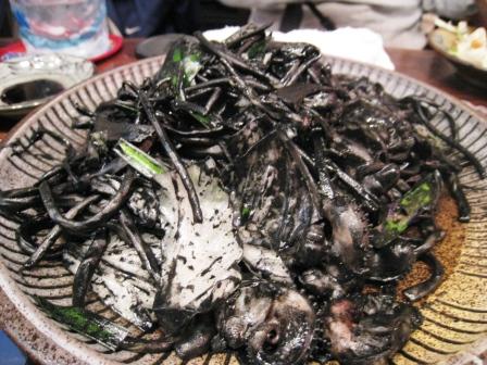 イカスミパスタのようなもの?でも違った美味しいよ~皆歯がまっ黒で笑えた