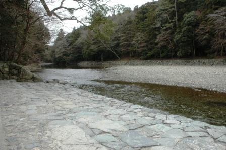 川の水、ひんやりとしていた。内宮の鳥居をくぐって五十鈴川