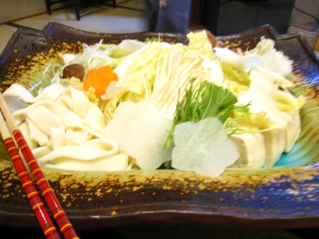 鍋のお野菜は家庭でも普段から頂いているもの、がっかりでした、しいたけは肉厚だったけど・・・