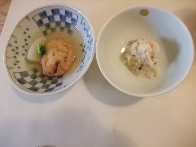 揚げしんじょうと蒸し鳥