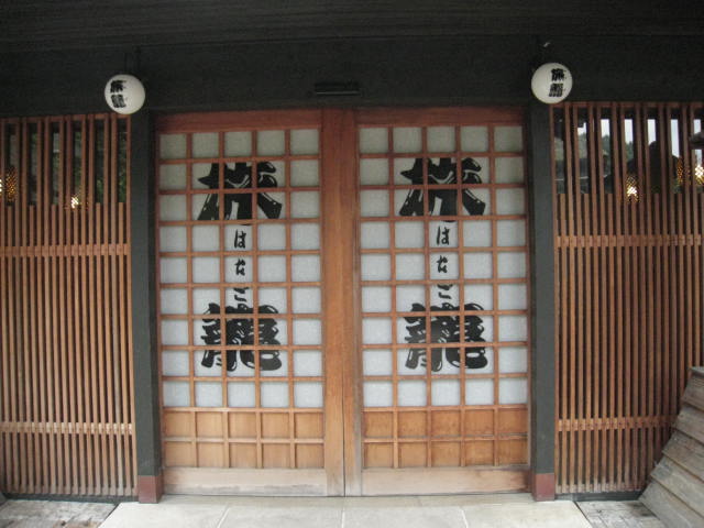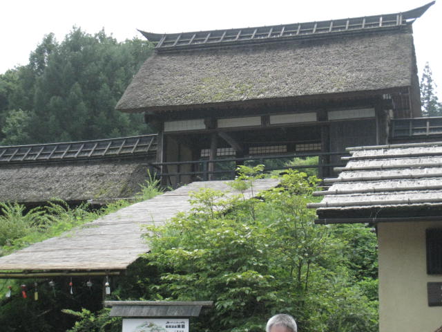 正面玄関 「薬師長屋門」はかやぶきで出来ています。