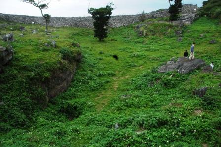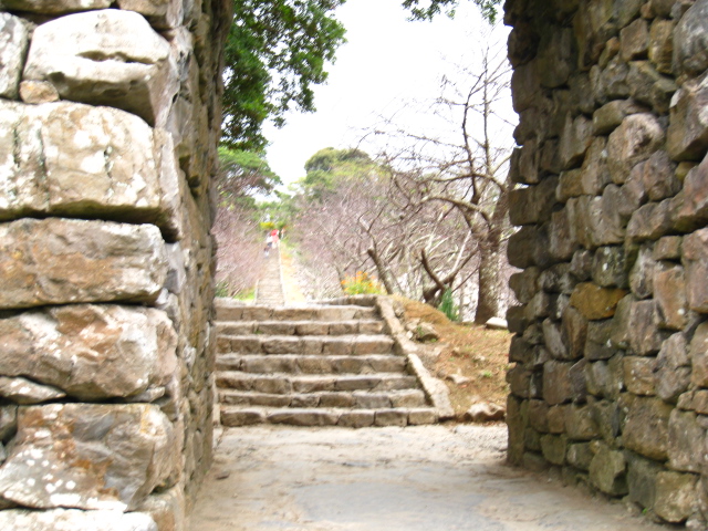 城跡からは断崖絶壁、緑の深い山々、そして東シナ海が臨めました。