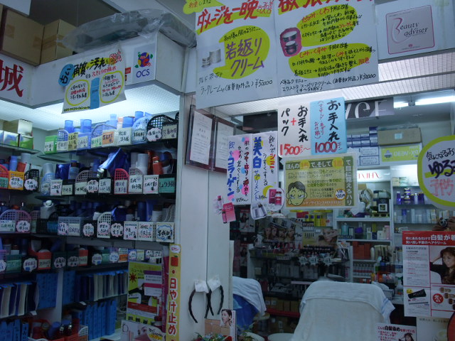 市場内にある化粧品のお店でマッサージ体験